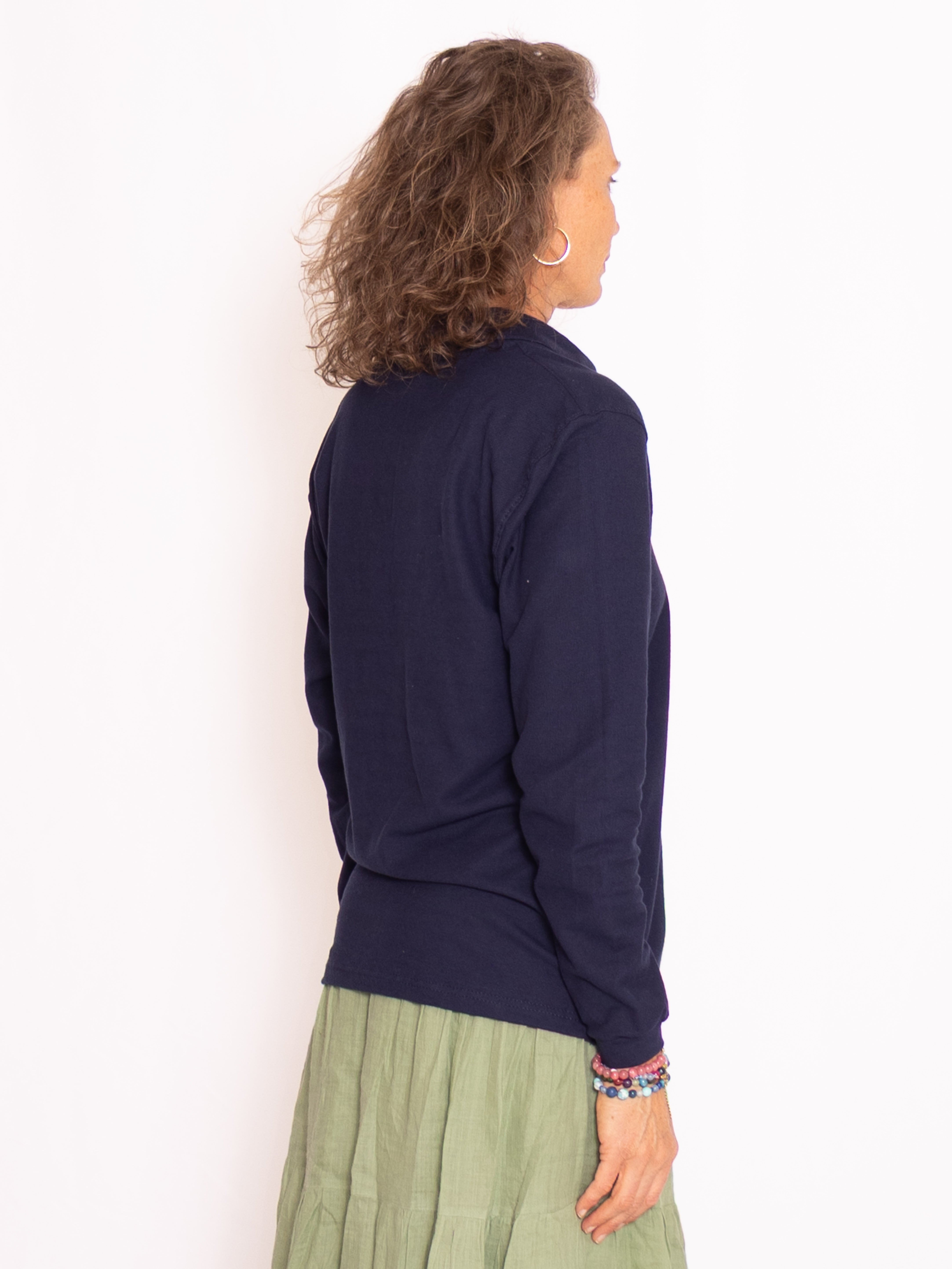Modellen är 181 cm och bär storlek M