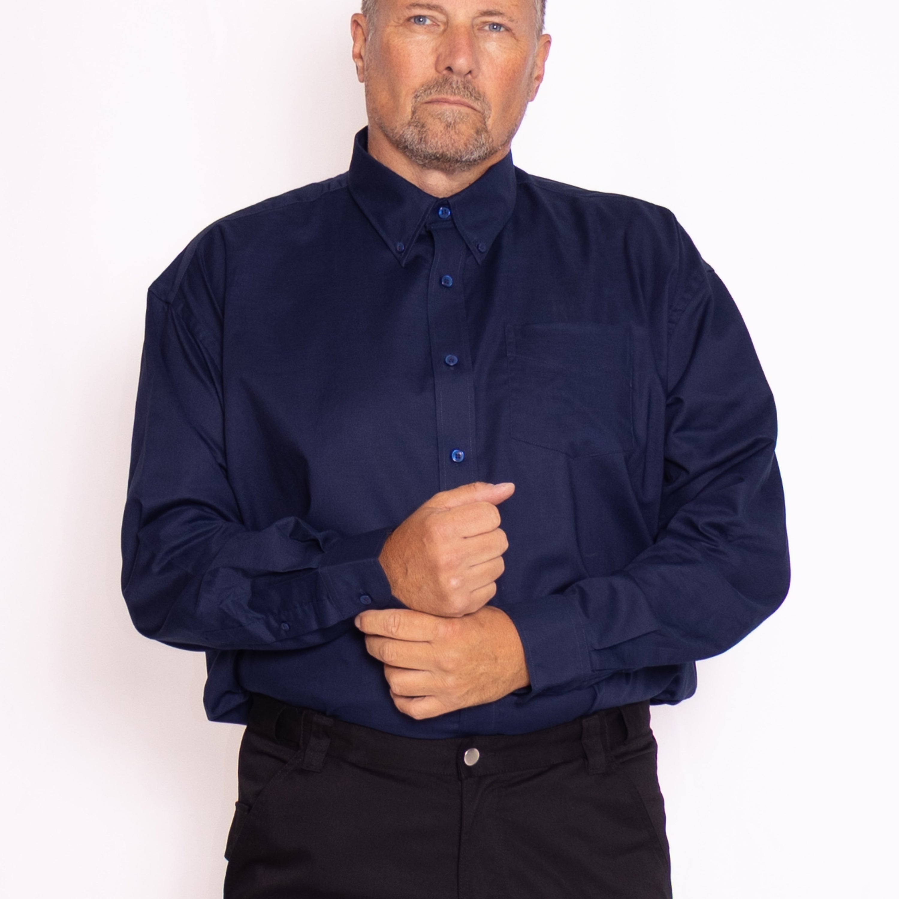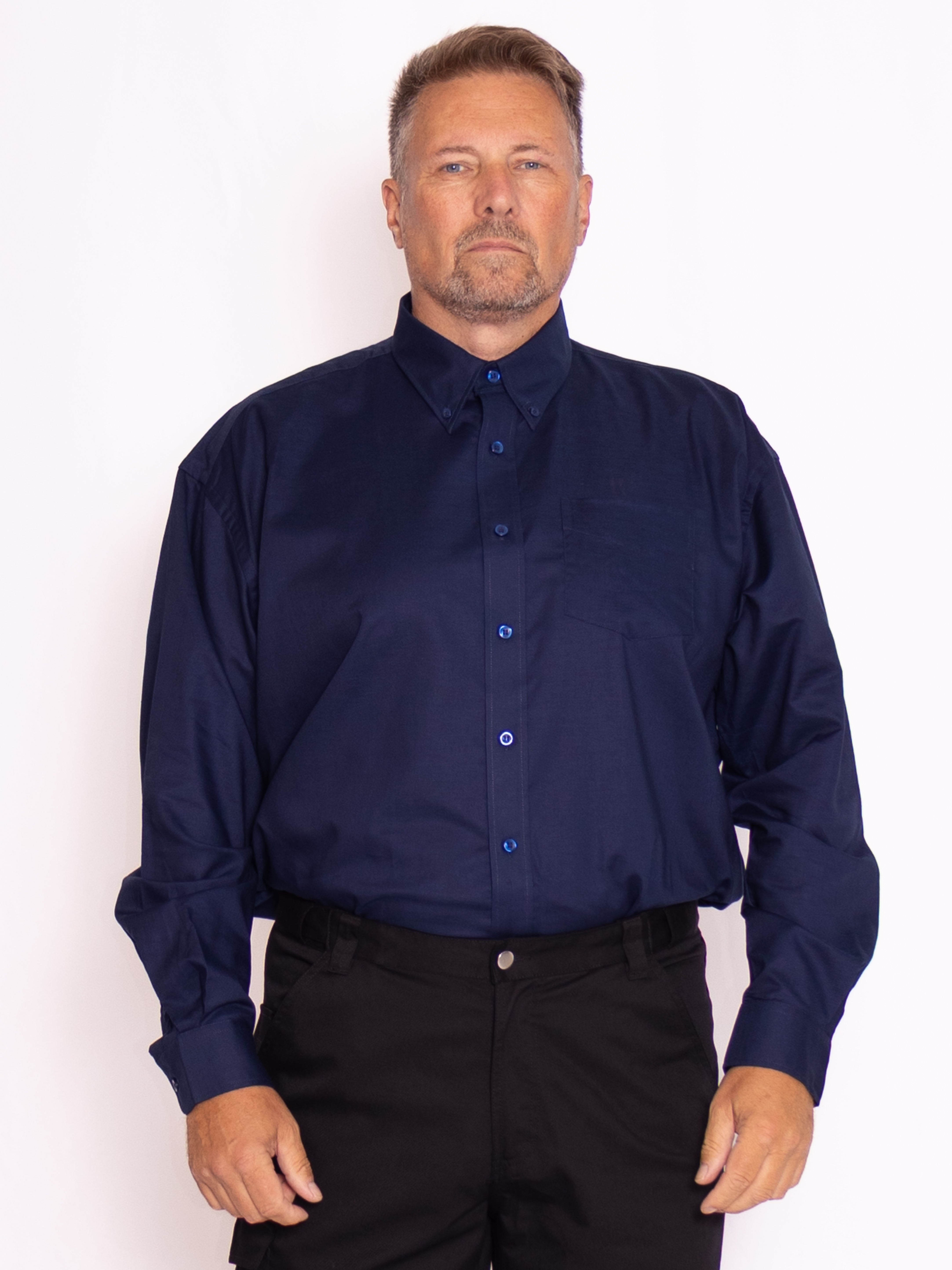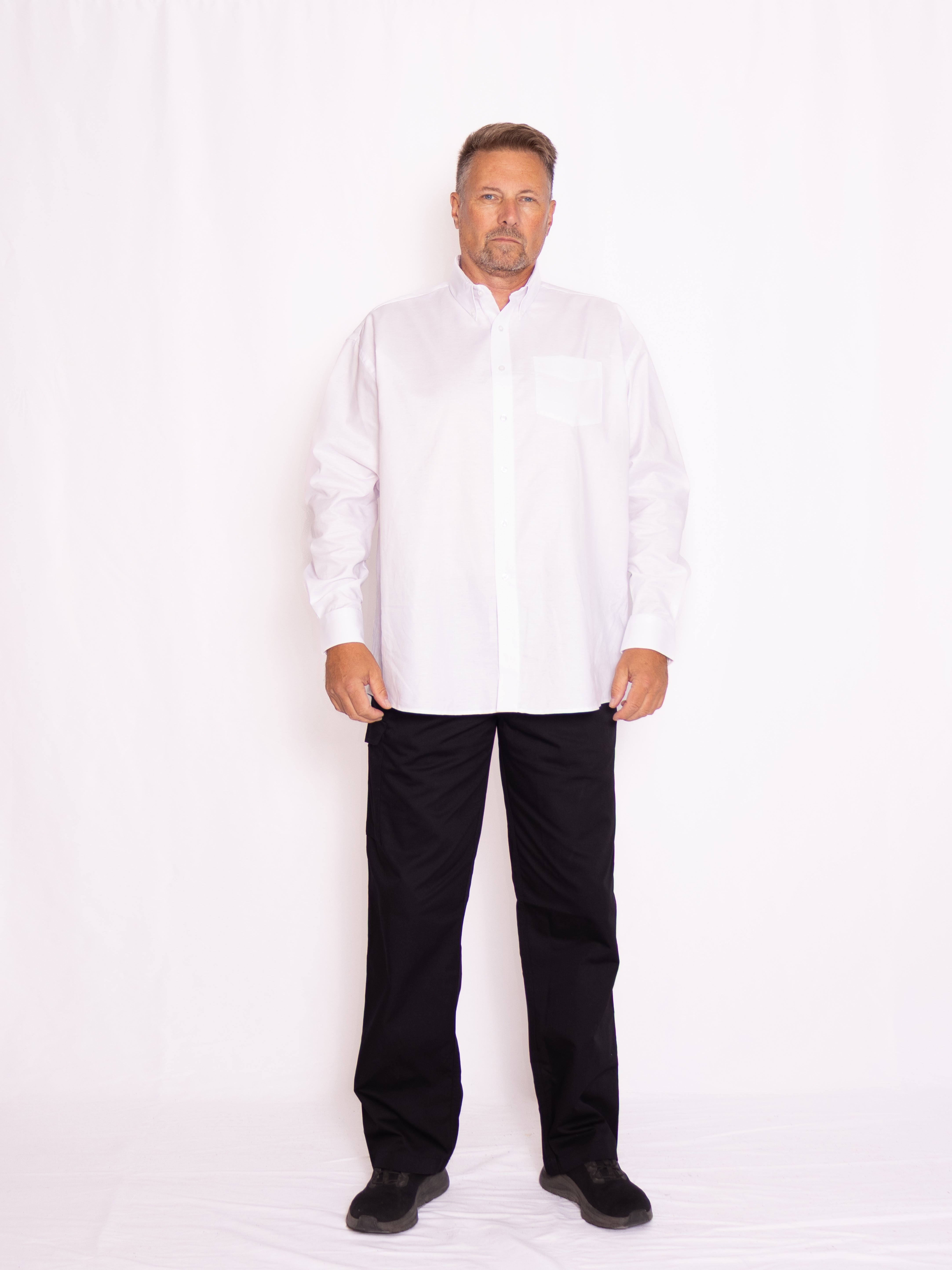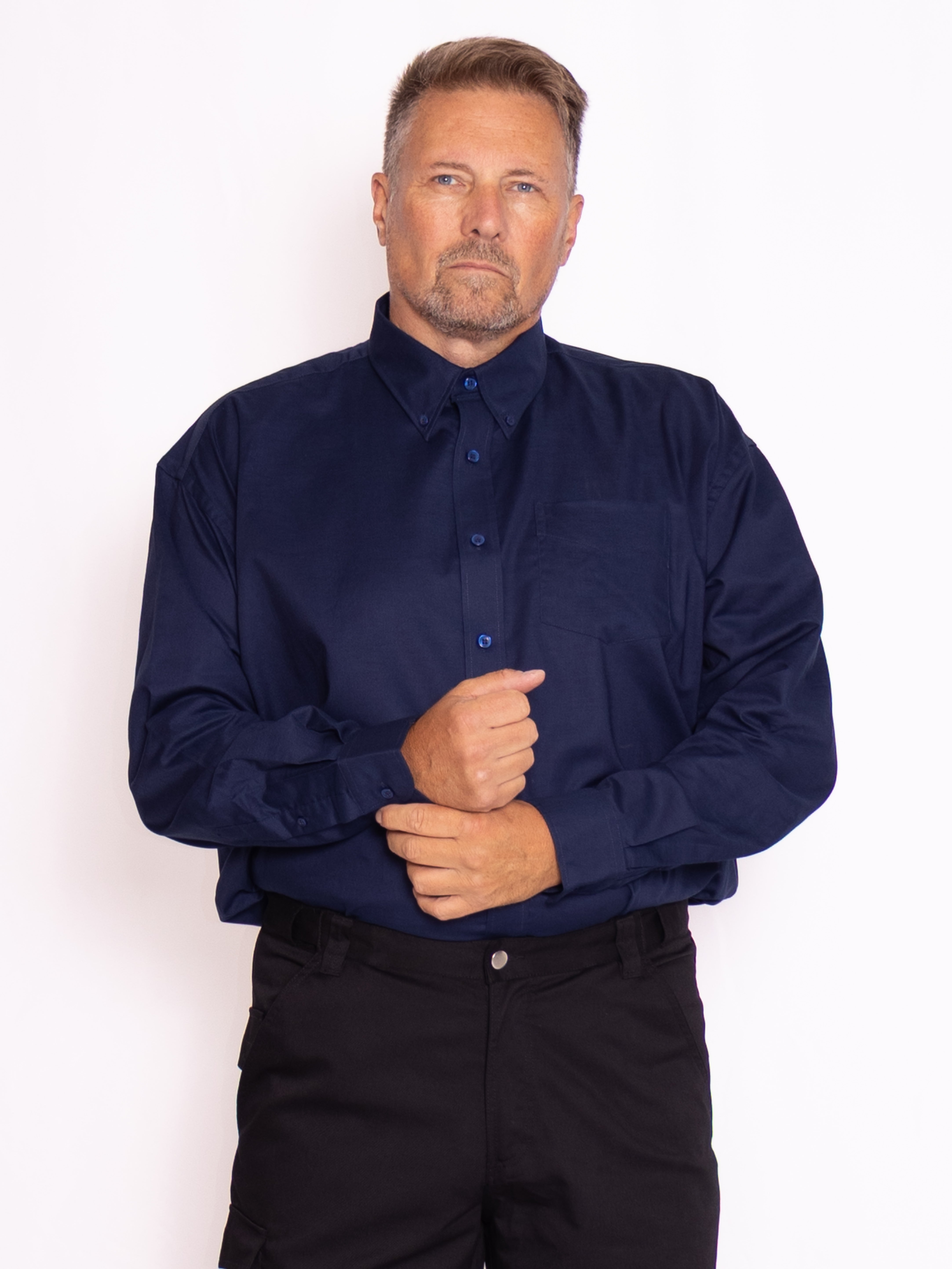 Tillför en klassisk touch till din garderob med vår långärmade oxfordskjorta för herr – perfekt för både arbete och fritid. Skjortan är gjord i en slitstark och behaglig oxfordväv (70 % bomull / 30 % polyester) som kombinerar komfort med ett stilrent uttryck. Med en vikt på 130 g/m² för vita varianter och 135 g/m² för färgade känns den lätt och luftig mot huden. Skjortan kan tvättas vid upp till 40 °C och finns i ett brett urval av storlekar. Ett klassiskt val för alla tillfällen – och kom ihåg, vi erbjuder attraktiva priser vid större beställningar!