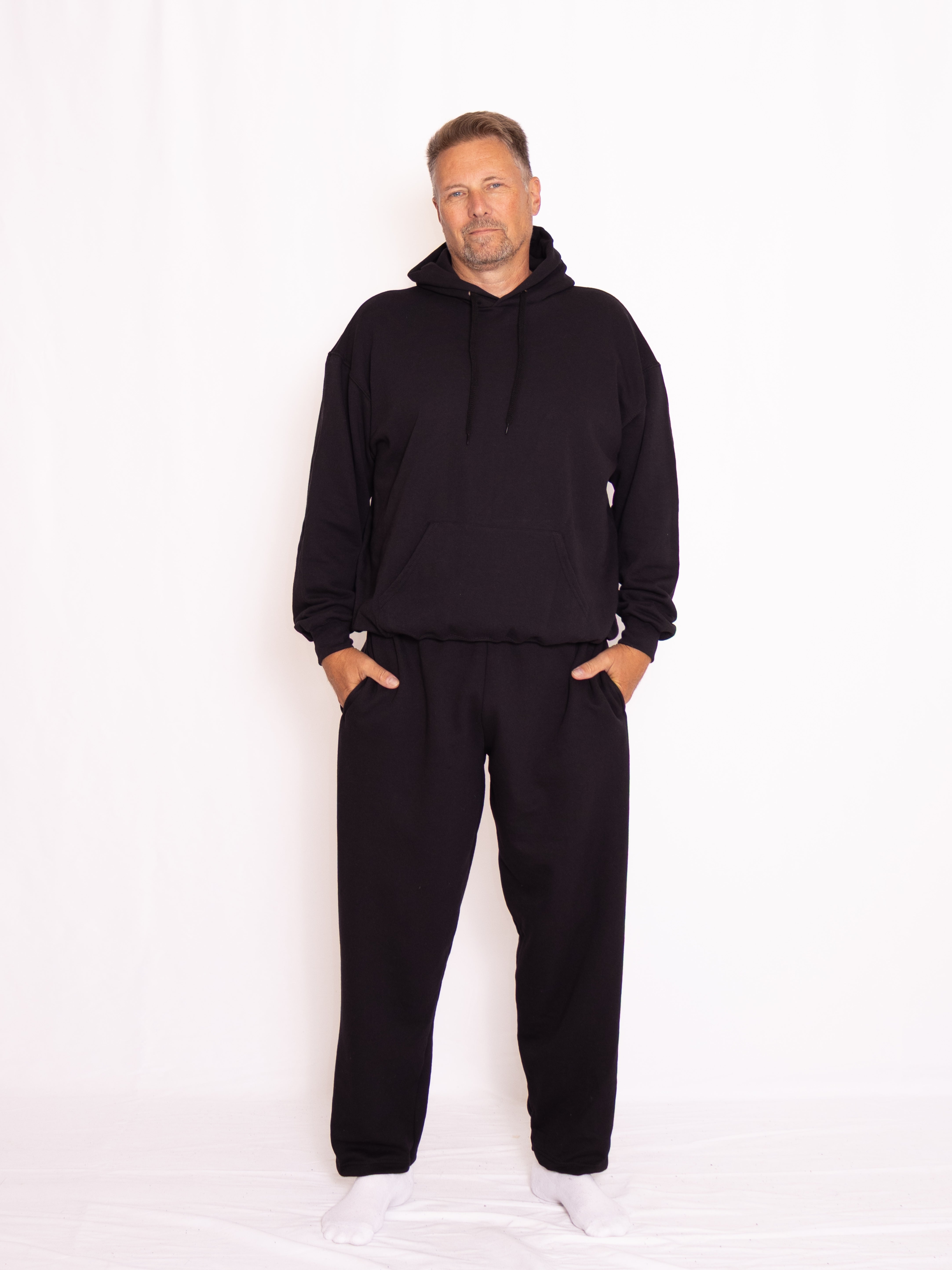 Ett klassiskt sweatset som kombinerar komfort och stil för både vardagsbruk, avkoppling och träning. Setet består av en unisex-hoodie och ett par sweatpants utan resår vid anklarna – båda tillverkade i en mjuk bomullsblandning (80 % bomull, 20 % polyester) som ger värme, rörelsefrihet och en tidlös look. Med en rymlig huva och lös passform får du ett praktiskt och bekvämt set som passar för alla årstider. Finns i flera färger – ta del av vårt ”Köp mer, spara mer”-erbjudande och uppdatera garderoben med kvalitet till ett bra pris!